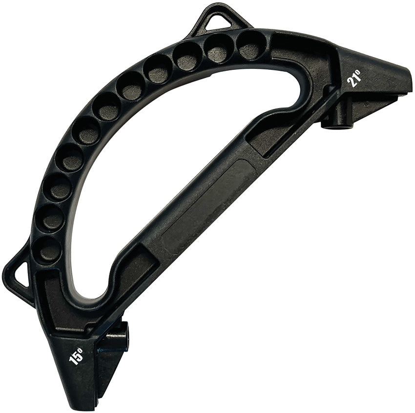 6.25" overall. Black ABS handle. Great for: knives, pruners, loppers, shears, mower blades, scissors. 15 and 21 degree sharpening. Clam packed.